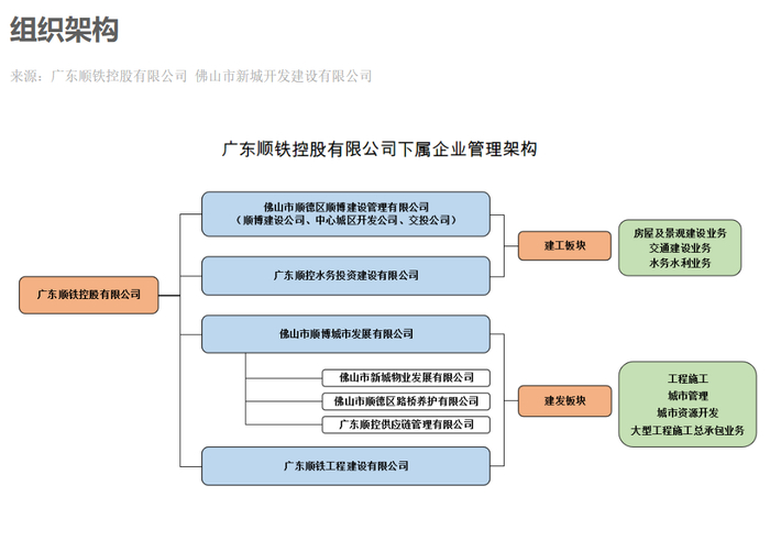 公开资料显示,广东顺铁控股有限公司前身为佛山市顺德区顺铁物业发展有限公司,于2016年10月24日成立,注册资本15亿元,是佛山市顺德区国有资产监督管理局全资控股的国有独资企业。2019年7月,正式更名为广东顺铁控股有限公司,后与佛山市新城开发建设有限公司有机整合,搭建“一个集团+两个板块+三大主业”发展架构,下设建工、建发两个板块,立足顺德,放眼粤港澳大湾区,重点打造城市建设、城市管理、城市资源综合开发三大主业,争当城市建设主力军、城市品质提升的示范者、产业转型升级的推动者。