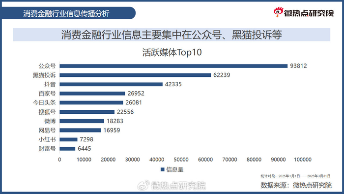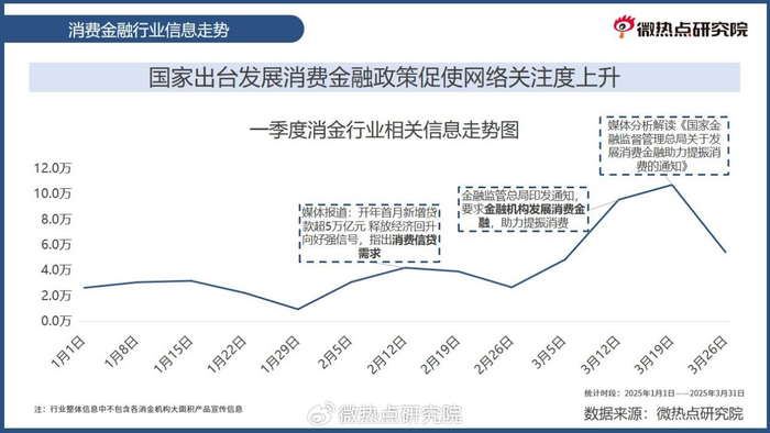 2025年1月1日至3月31日,消费金融行业相关全网信息量为56.7万条。