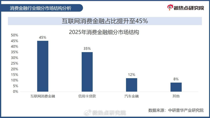 《调研报告》还对消费金融细分市场结构占比进行分析,指出信用卡贷款占比下降至35%(2020年为48%),互联网消费金融占比提升至45%;绿色消费金融(新能源车分期、低碳家电分期)增速超30%,成为核心增长引擎。消费金融市场逐渐实现了从传统信贷模式到互联网消费金融模式的转变,这与当下金融相关部门对消费金融发展期待相吻合。国家金融监督管理总局还提出了“金融机构应持续深化数字赋能”“金融机构应持续深化数字赋能”“消费场景支付便利化”等要求,均指向更加创新化、便利化的消费金融发展形式。