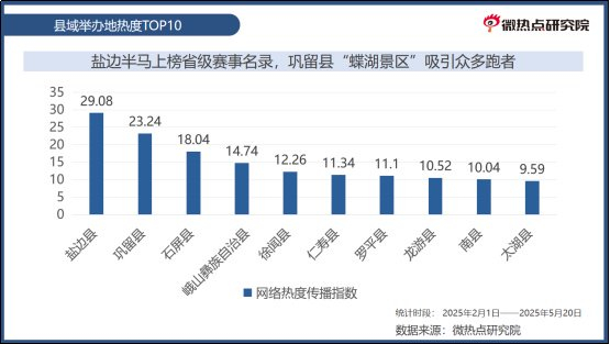 近年来,马拉松赛事从一线城市向县城下沉的趋势愈发显著。据中国马拉松官方网站数据,2025年承办马拉松赛事的县域城市超70个。在已完成的赛事中,盐边县、巩留县相关赛事的网络传播热度较高。