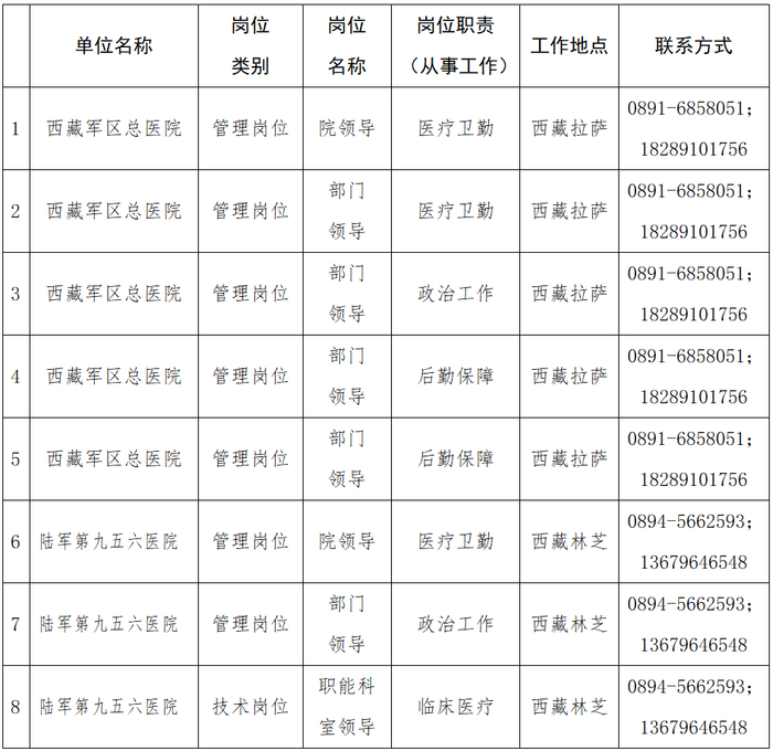 据“西藏军区总医院”微信公众号消息,为吸纳优秀退役人才继续服务国防和军队建设,根据《中国人民解放军文职人员条例》《从退役军人中专项招录文职人员暂行规定》等政策规定,西藏军区总医院拟从2026年选择以转业方式安置的退役军官中专项招录文职人员。