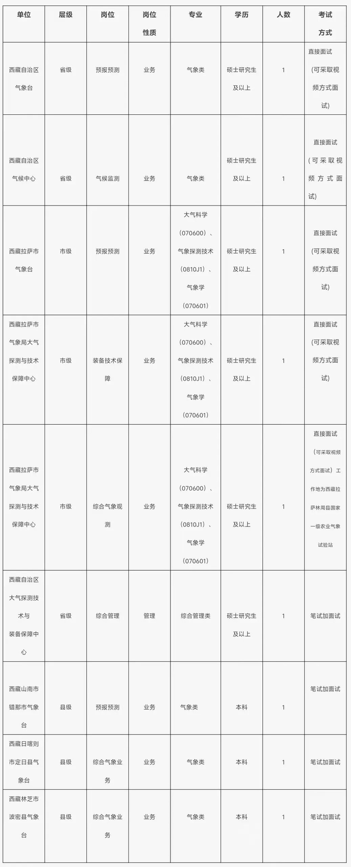 通过西藏自治区气象局官网(http://xz.cma.gov.cn)、气象人才招聘网(http://zp.cmatec.cn)及中国气象局官网同步发布招聘公告。