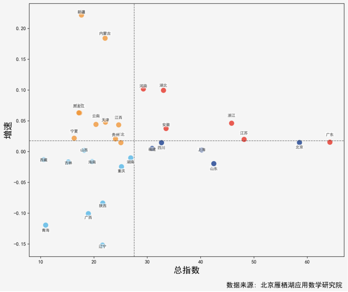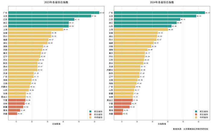 省级层面,广东、北京、江苏、浙江、山东连续多年稳居头部,尾部省份与发达地区差距持续缩小,形成“东部引领、中部加速、西部追赶、东北跟进”的协调发展格局。