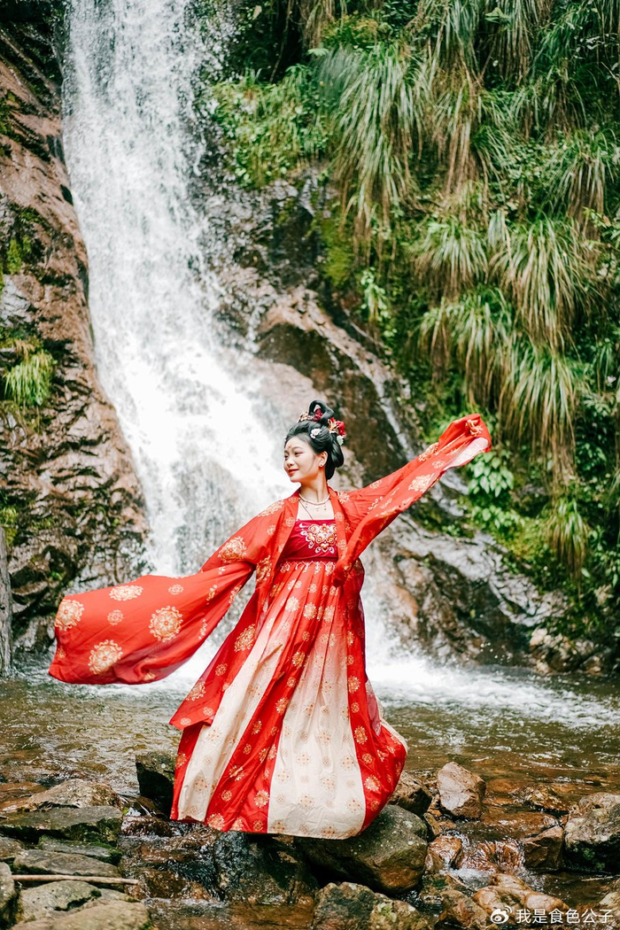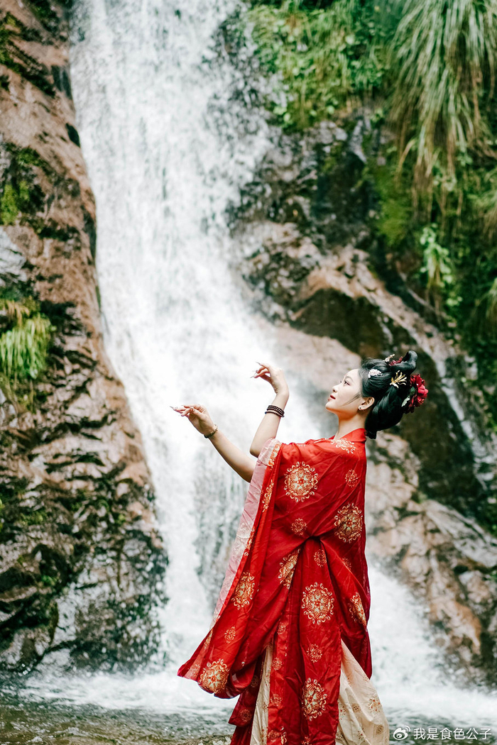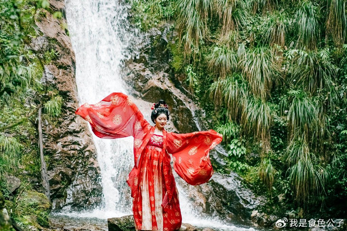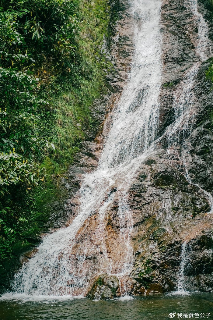 瀑布所在的山谷弥漫着清新湿润的空气,绿树苍翠、青苔丛生,仿佛置身于一个神秘而美丽的仙境。四周是高耸入云的山峰和碧绿而苍翠的青竹,犹如天然的屏障,守护着这片世外桃源。