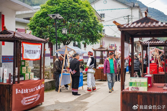 五府山畲族三月三活动现场,除了有畲族民族歌舞、服装展示、巡游、对歌、婚俗表演,还有斗茶、斗蜜、集市等非常多的活动。在热闹的风情街集市里,可以买到五府山烟笋、蜂蜜、茶叶等特产。“斗茶节”除了品茶、斗茶之外,本次斗茶节还邀请了手指画非遗传承人王永红老师在斗茶节现场为游客现场作画,用五府山的茶汤磨墨作画,用手指绘出五府山的山水美景,独一无二!斗蜜也是不可错过的环节,游客观众在竞答环节答对问题就能得到十分可爱的蜜蜂玩偶,在现场还能买到天然高品质的蜂蜜。