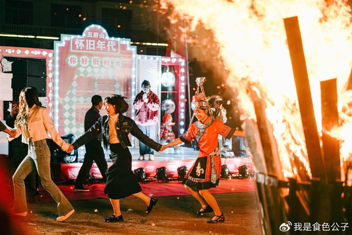 五府山三月三期间,在横溪村除了畲寨美食节、蜜王争霸赛之外,晚上还有不容错过的乡村复古音乐节。乡村复古音乐节上有很多精彩的表演,怀旧歌曲演唱、畲族民歌演唱、网络热门舞蹈等等,表演结束还有篝火晚会,大家手拉手围着篝火尽情欢跳,氛围实在是太热烈了!