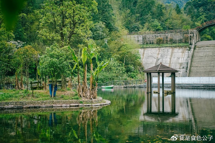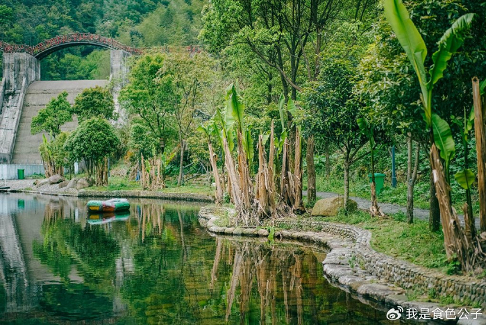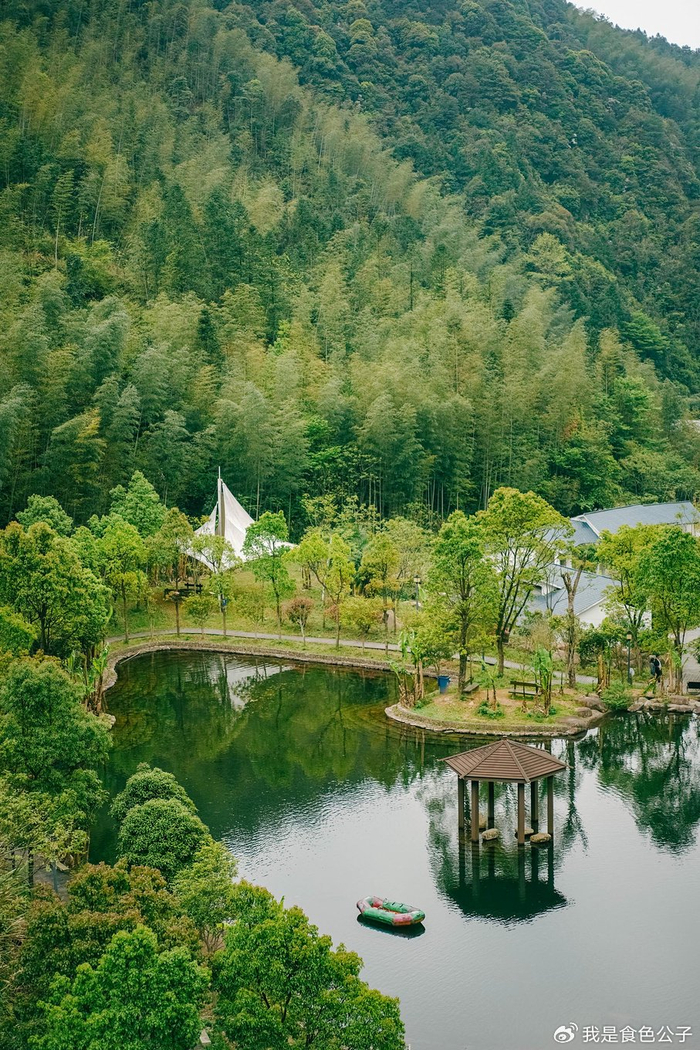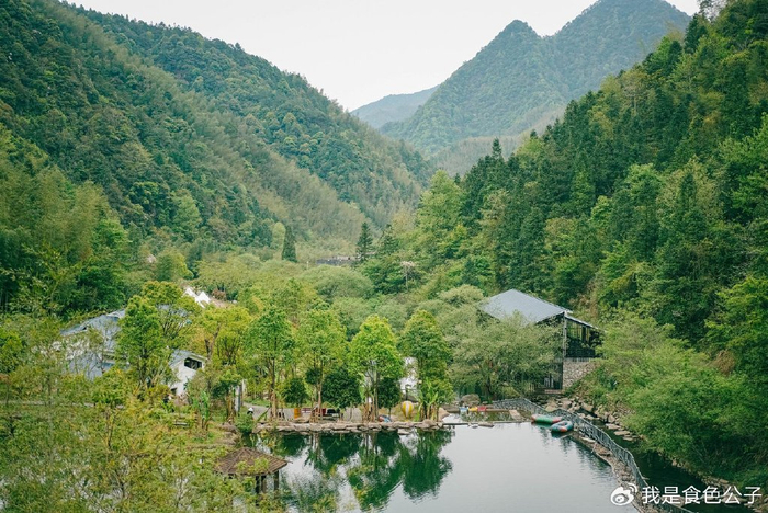 在距船坑村十几分钟车程的五府山里隐藏着中华蜜蜂的发源地之一:蜜蜂谷,这里的自然生态环境优异,四季分明、风景如画,春时百花争艳、漫山锦绣,登高望远,翠竹、密林、百花、湖水相映成一幅春日美景图。