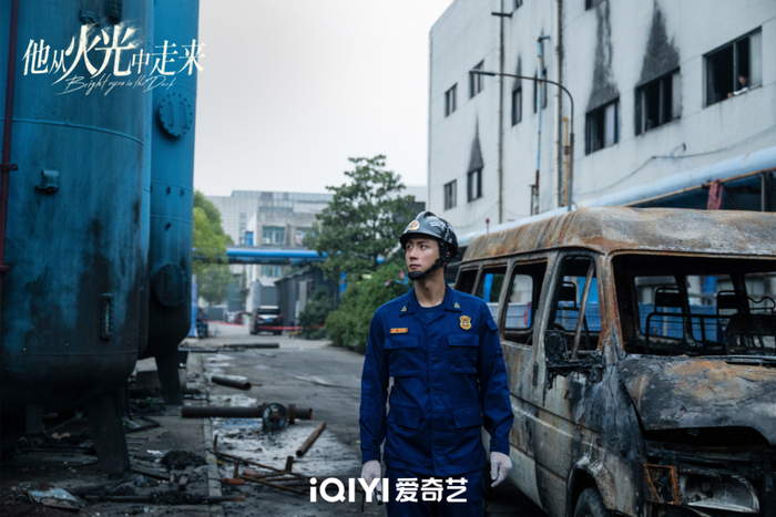 为了提前研究好这场戏的调度,天毅和联合导演易勇、美术、摄影大大小小开过七八次会,用纸和笔反复验证每一个镜头的机位、方向、运动轨迹。再加上演员们已经通过前期的训练和拍摄,衣服一穿就能进入消防状态,于是非常顺利、安全地啃下了硬骨头。/她从哪里走来?