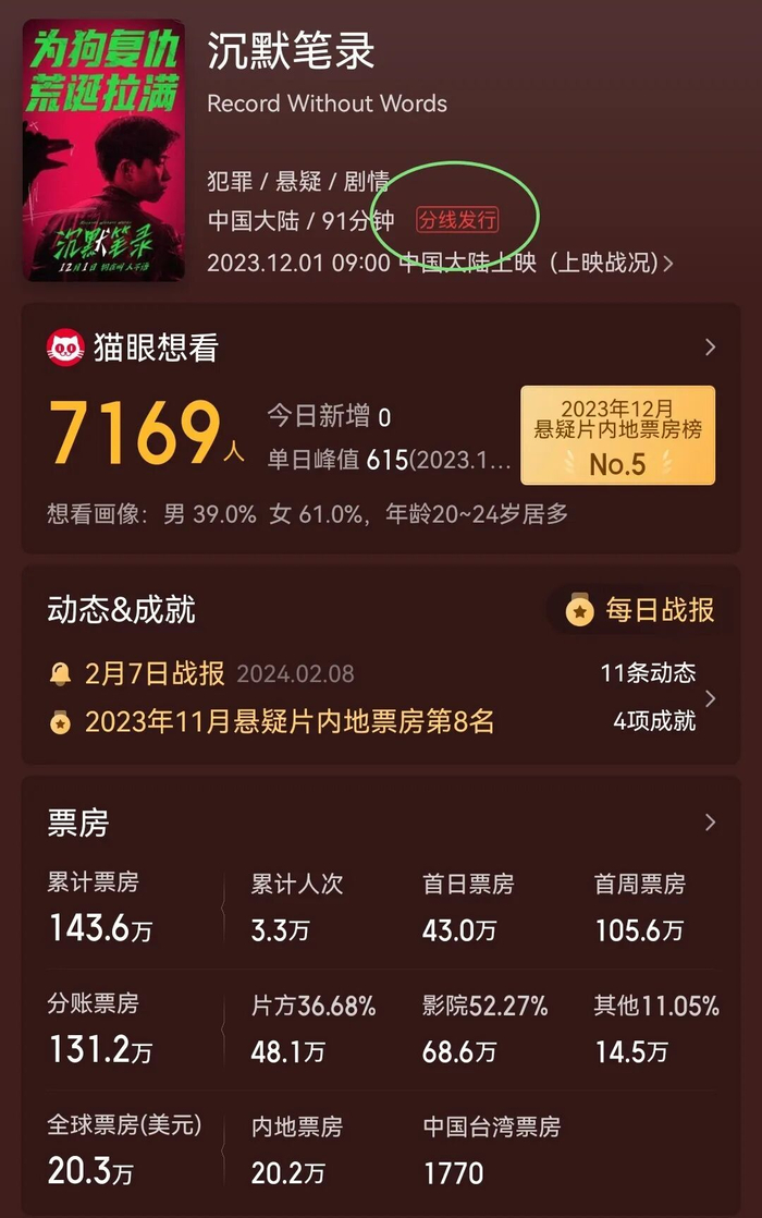 首部正式采用分线发行的影片《沉默笔录》
