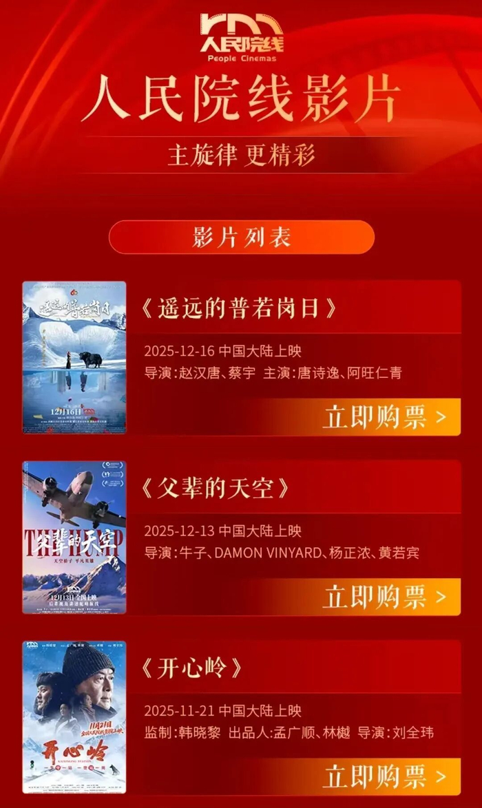 第三个是2018年由国家电影局统筹组建的人民院线,目前全国有5000个厅,专注于对“特定优秀主旋律影片”和“重要时间节点的重要影片”实行放映。