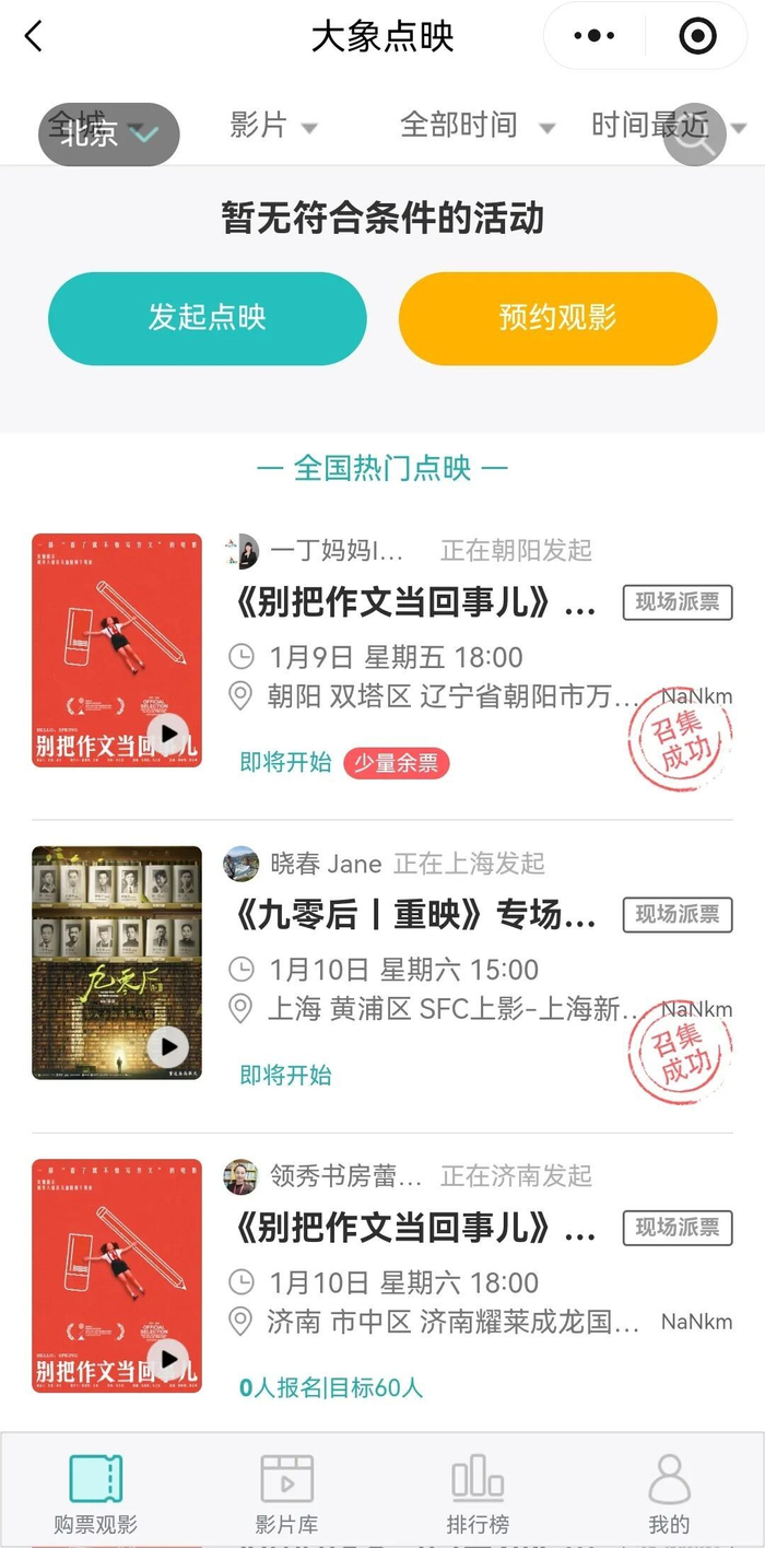 他们的片子有些不用全国发行,而是通过众筹模式让用户发起观影活动,在召集到足够人数后,便于合作的影院放映。目前他们运作过几十部影片,合作的影院覆盖全国300多座城市。