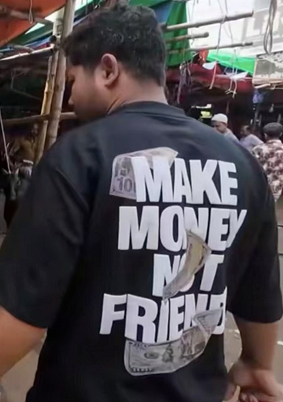 或许,他们的结局,就藏在了一哥所穿T恤的字样里:“MAKE MONEY. NOT FRIENDS”(赚钱至上,而非友情)。