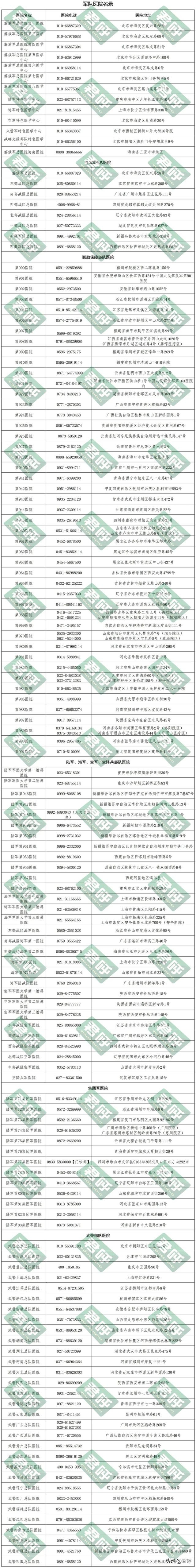 今天,君呼梳理出的军队医院名录,较之前版本有更新个别差错或不完善的内容,如医院有两个院区的,均做了梳理公示,同时对各集团军医院进行了梳理,还新增加了各省区市武警总队医院名单、电话及地址。