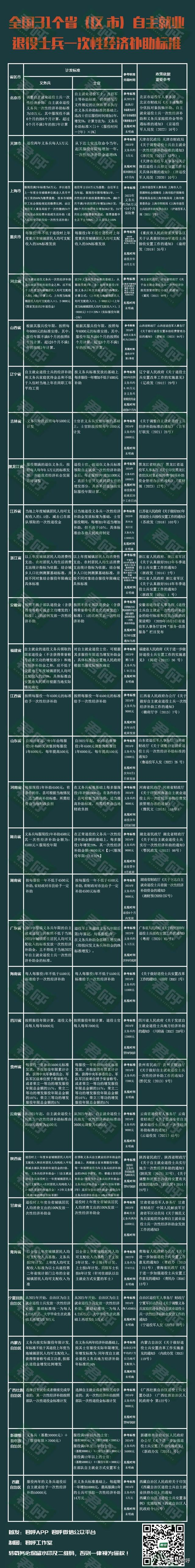 对于具体的标准参考,君呼也做了梳理,详见下表。日后有更新,可关注“君呼”公众号,回复“地方退役金”查看最新版本——