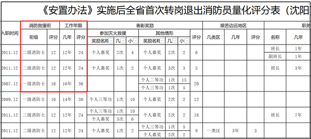 对退出的消防员安置,如何转岗?注意到,沈阳市在符合退出消防员转岗安置中有量化评分细则——