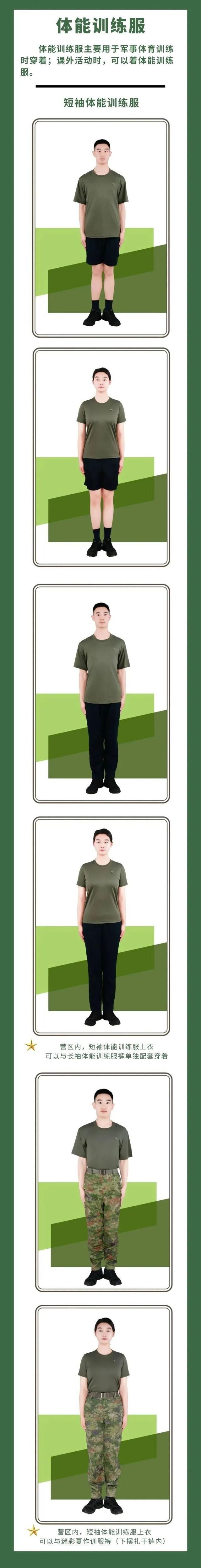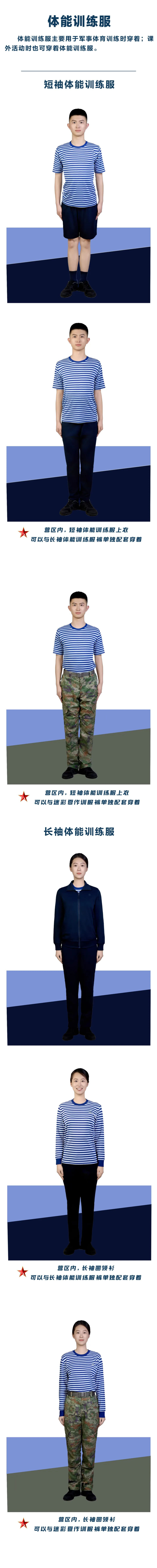 军人在军事体育训练时,通常着体能训练服;课外活动时,可以着体能训练服。
