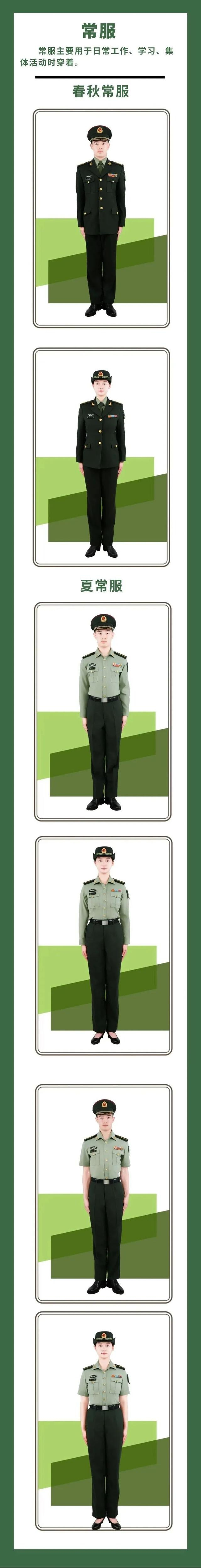 新的共同条令进一步完善了军人仪容着装要求,对常服、作业服、迷彩作训服等穿着时机场合和配套要求进行了调整优化,用常服对应品种替代了礼服大檐帽、肩章、皮鞋以及作业服皮鞋。新条令下如何配套着装,让我们先睹为快吧!