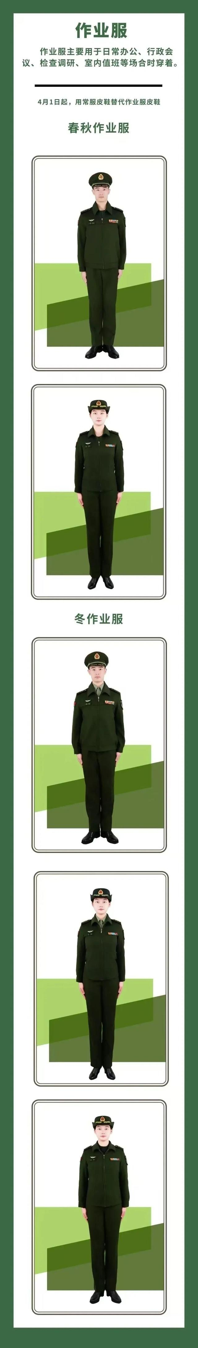 军官在日常办公、行政会议、检查调研、室内值班等场合,可以穿着作业服。