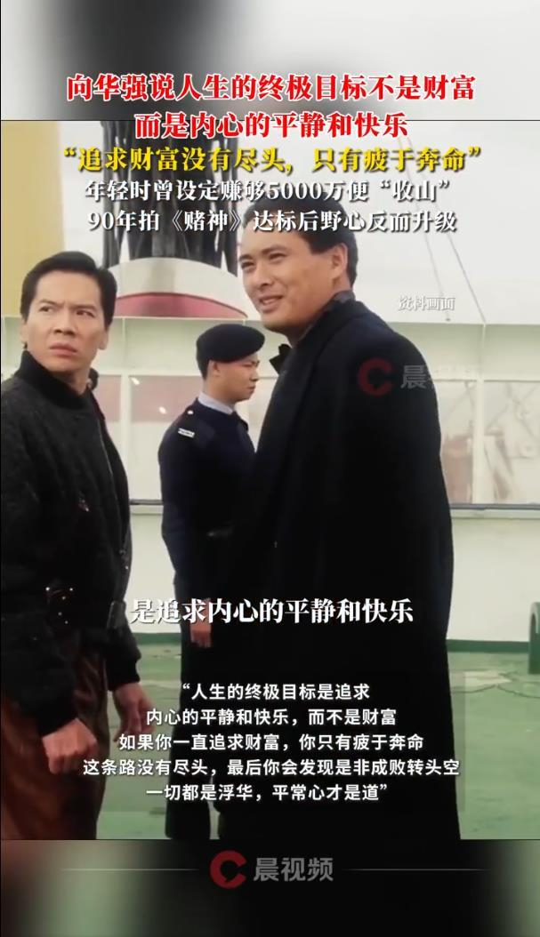 视频中,向华强揭秘了自己年轻时的“退休计划”:赚够5000万就“收山”。这个目标在1990年拍完《赌神》后便已达成。然而,财富达标后,他并未感到满足,反而野心升级,陷入了“越追越空”的焦虑循环。他形容那种状态是“疲于奔命没有尽头”,直到晚年经历事业起伏与金融危机洗礼后,才深刻反思:无止境的财富追逐,带来的往往是精神负担而非幸福。