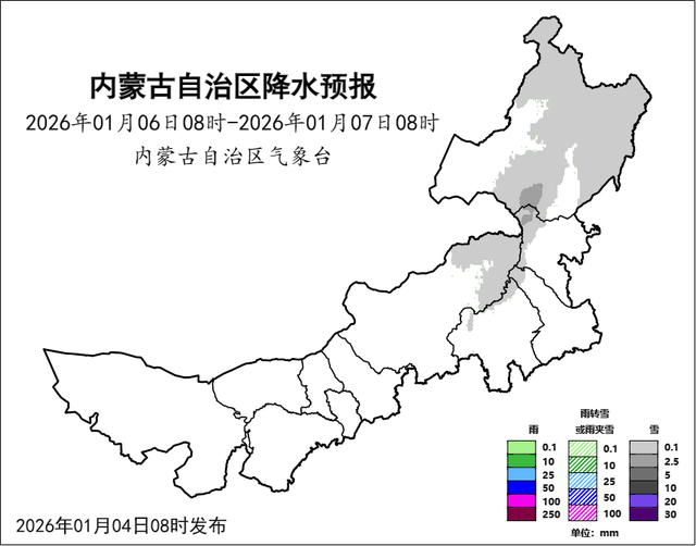 06日08时至07日08时,中部偏东、东部偏西和偏北地区多云,有小雪,兴安盟西北部、呼伦贝尔市南部有中雪;西部大部、中部偏东、东部偏西和偏南地区5、6级短时7、8级西北风;中部偏东、东部大部地区气温下降4到8℃;东北部偏西地区气温下降8到10℃,局地气温下降10℃以上。