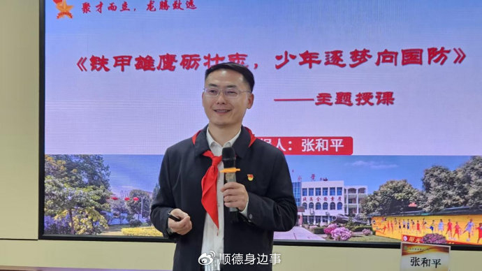 教学楼内,一场主题为“铁甲雄鹰砺壮志,少年逐梦向国防”的队课同时进行。龙江镇宣教办主任张和平以校园内的退役歼-6战机为切入点,娓娓道来中国空军从“追赶”到“领航”的发展历程。他还分享了龙江籍优秀青年梁嘉锦从笔墨“亮剑”到接受检阅的成长故事,通过身边人的真实经历,激励队员们珍视理想、勇敢追梦,在孩子们心中播下爱国报国的种子。