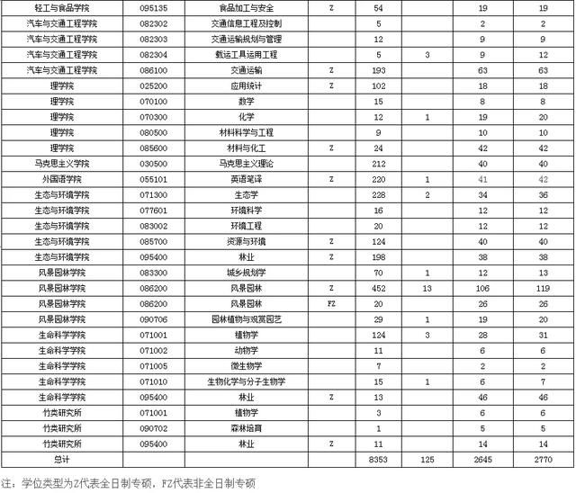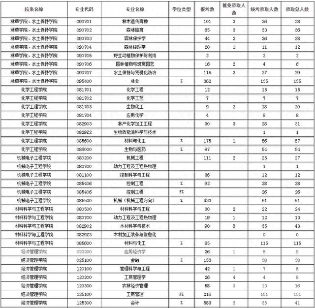 下面是南京林业大学2024年各专业报录情况统计,仅供参考。