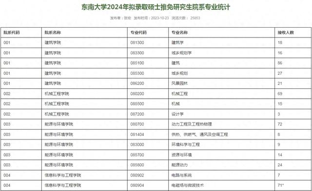 下面是对东南大学2024年各专业已接收推免生人数汇总情况,仅供参考。