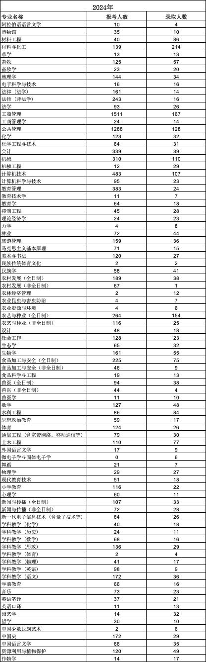 下面是宁夏大学2024年各专业报录情况统计,仅供参考。