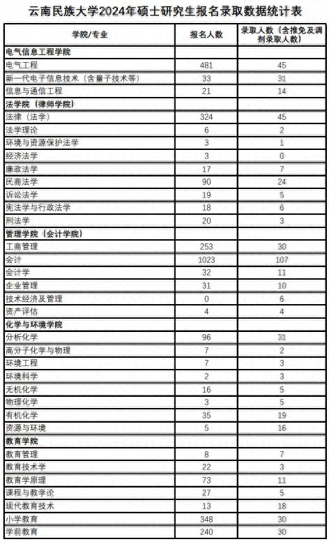 下面是云南民族大学2024年各专业报名情况统计,仅供参考。
