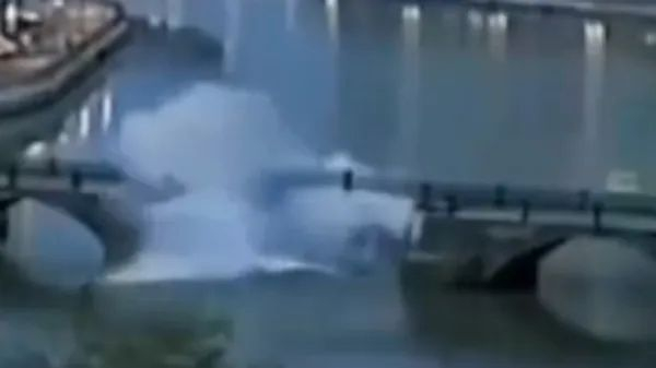视频截图6月8日晚,广东韶关市南雄市一桥面坍塌,有人落水。相关视频显示,桥面坍塌时,有人正在通行,直接落入水中。6月9日上午,南雄市应急管理局工作人员向澎湃新闻表示,目前,该事件仍在处置中,以之前发布的通报为准。