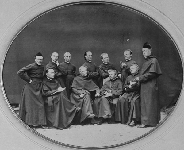 孟德尔(箭头所指的那位)和修道院的同事们(来源:Gregor J. Mendel-Genetics Founding Father)