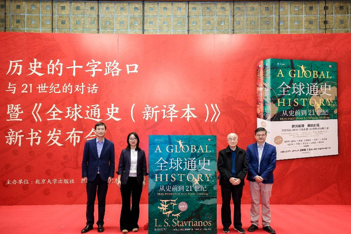 风靡全球半个多世纪的史学经典《全球通史:从史前到21世纪》由北京大学出版社重磅推出全新译本,知名历史学者王皖强、刘北成重译全文,史学泰斗斯塔夫里阿诺斯的经典巨著以全新的面貌呈现在读者面前。2024年11月5日,北京大学出版社、北大博雅讲坛、培文和京东图书联合主办的“历史的十字路口:与21世纪的对话暨《全球通史(新译本)》新书发布会”在北京大学英杰交流中心阳光厅举行。