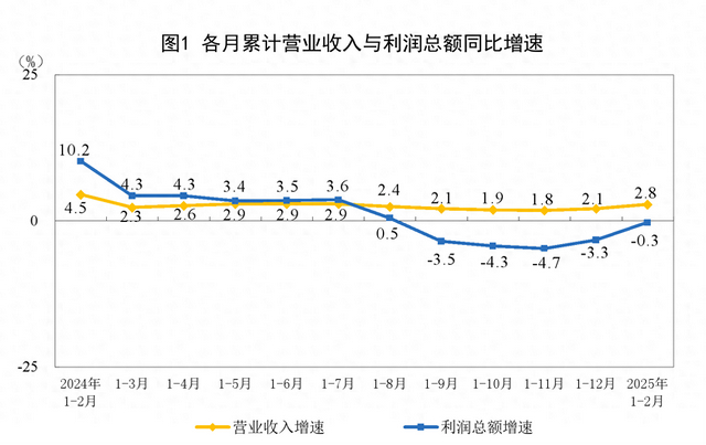 国家统计局发布数据显示,1—2月份,全国规模以上工业企业实现利润总额9109.9亿元,同比下降0.3%。1—2月份,规模以上工业企业中,国有控股企业实现利润总额3487.7亿元,同比增长2.1%;股份制企业实现利润总额6739.2亿元,下降2.0%;外商及港澳台投资企业实现利润总额2304.6亿元,增长4.9%;私营企业实现利润总额2209.9亿元,下降9.0%。(国家统计局)