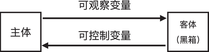 任何一个客体事物,它和作为主体的人的关系总可以归结为两个部分。一部分是客体对主体的作用,包括主体所接收到的客体的信息,以及客体对主体的各种作用、影响。它们反映在客体的输出中,可以用一组变量来表示,这组变量被称为这个客体的可观察变量。另一部分是主体对客体的控制作用,包括主体传递给客体的信息,以及主体对客体的各种作用、影响。它们反映在客体的输入中,也可以用一组变量来表示,这组变量被称为这个客体的可控制变量(图1)。通过可观察变量,人们对客体进行观察,了解客体的存在及其变化,认识客体。通过可控制变量,人们对客体实行控制,创造使客体变化的条件,改造客体。此外,通过主体和客体的反馈耦合,在客体被认识和改造的同时,主体的精神活动也被认识和改造。因此,人们的实践活动,从根本上来说都可以表示为主体和客体之间的反馈耦合,都可以用可观察变量和可控制变量来描述。