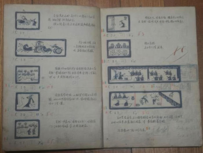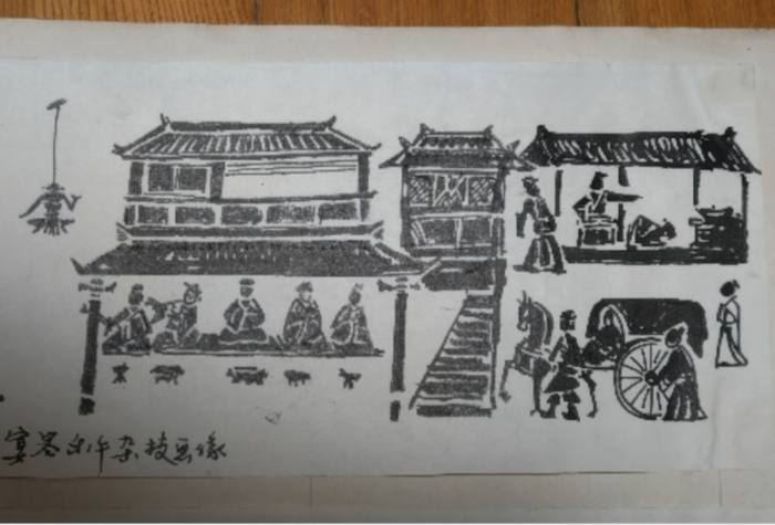 采风绘制的速写素材手稿传统的上美影剪纸动画作品,工艺以剪刻为主。为了在银幕上呈现画像砖拓片的厚重古朴,同时保留明显的剪纸动画特性,摄制组创作人员突破传统工艺,把布染印刷厂的印染技术巧妙地运用到剪纸动画绘制工艺中,自制模具,在印钞纸上反复试验,最终在银幕上看到了理想的美术效果。