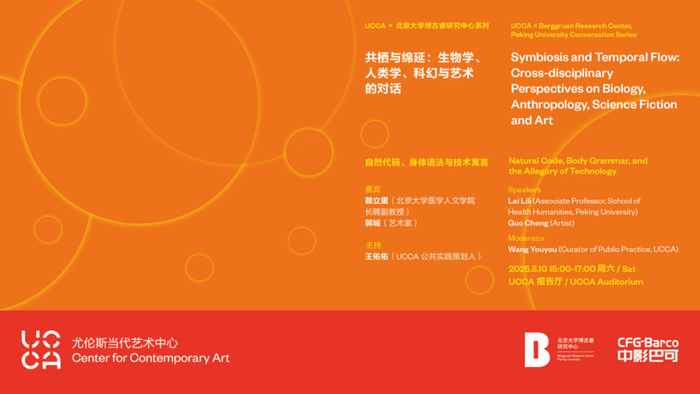 平行系列对话“共栖与绵延”由UCCA尤伦斯当代艺术中心与北京大学博古睿研究中心联合发起,旨在发现不同科学领域的研究者、哲学领域的思考者与当代艺术创作者之间的合作与共振,就“利他机制”“自我意识”等话题从不同角度切入交流,以及如何在真实且连续的时间体验中形成历时性的互文机制。该系列的三场对话邀请了生物学、医学人类学以及科幻写作等领域的学者,与具有跨媒介创作经验的艺术家们展开对谈。