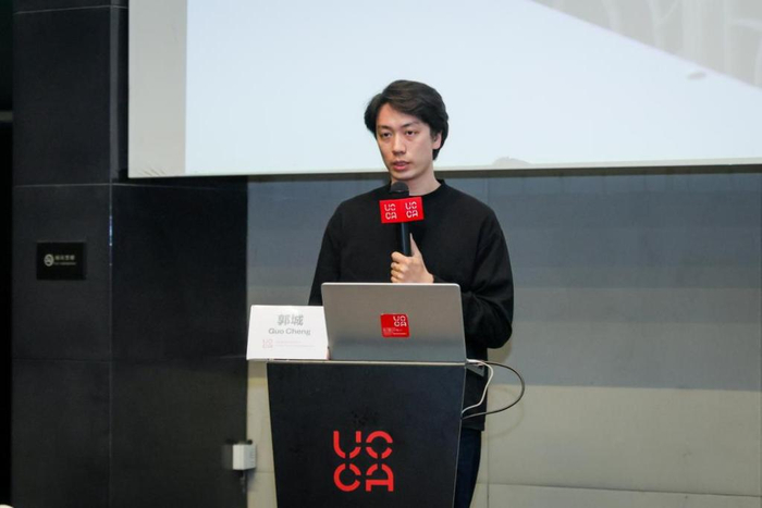 “共栖与绵延”第二场对话活动现场,嘉宾郭城正在发言,2025年5月10日,UCCA北京报告厅。