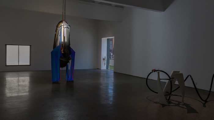 王佑佑从郭城展览中的身体元素切入,提问身体如果作为技术的试验场,技术对于身体而言究竟是一种自由,还是一种规训?郭城的展览“虫”(魔金石空间,北京,2025)在空间设计上,以一扇可跨越的窗户与位于展厅正中间的作品《月亮》,引导观众穿梭在暗示室内与户外的不同展厅空间,通过身体感知周期性的变化。赖立里表示郭城作品似乎整体而言也在模拟幼虫的形成,将过程凝固在装置中并且重构了作品的时间性。王佑佑补充道,展厅空间对观众身体的引导,可以追溯到功能分区的现代房屋的出现。人们进入不同的空间环境当中,然后身体会自然而然发生不同反应。比如起居室用于会客,卧室用于休憩,厨房用于做菜。将一个大的空间按照功能分割出若干小空间,是对身体最早的规训之一。