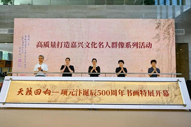 “嘉兴名人文化研究成果发布暨天籁回响——项元汴诞辰500周年书画特展开幕式”活动现场。本文图片均来自嘉兴市委宣传部