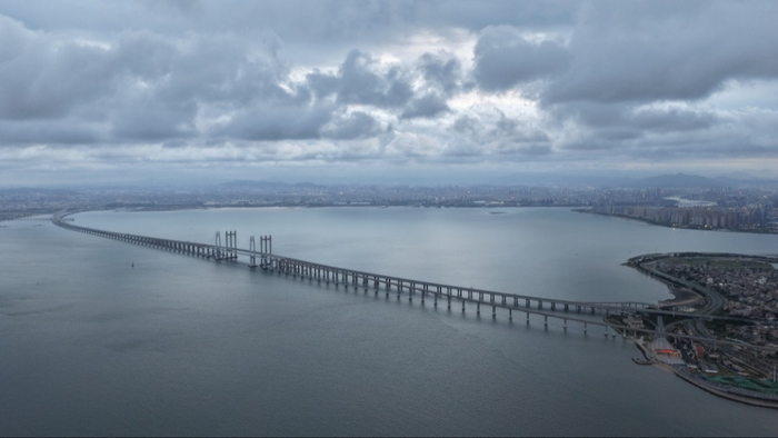 2025年7月5日,福建泉州,2025年第4号台风“丹娜丝”来临前,泉州湾上空云量增加,夕阳穿透云层。视觉中国 图据中央气象台消息,7月6日12时,今年第4号台风“丹娜丝”位于距离台湾高雄市西偏南方向约190公里,中心位置位于北纬北纬21.9度、东经118.6度,最大风力为12级,强度等级为台风级,将以每小时10-15公里的速度向北偏东方向移动,强度将有所增强。预计6日夜间至7日早晨台风“丹娜丝”将自南向北穿过台湾海峡,在此期间可能擦过或登陆台湾岛西部一带沿海,7日白天移入东海西南部海面,逐渐向福建北部至浙江中南部一带沿海靠近。