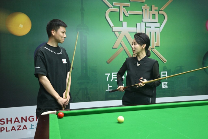 业余爱好者刘天时倾听潘晓婷面授机宜。潘晓婷认为此举是推广台球运动的一个有力举措,“平时自己练球和打正式比赛是完全不同的感觉,比赛带给你的历练超乎想象,全国优秀的业余爱好者可以一起切磋,更不要说两张外卡名额可以让大家有机会去和大师们比赛,这是非常难得的学习机会。”