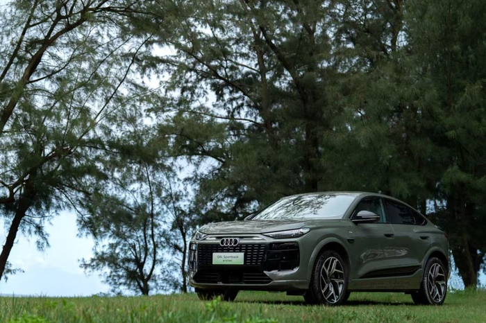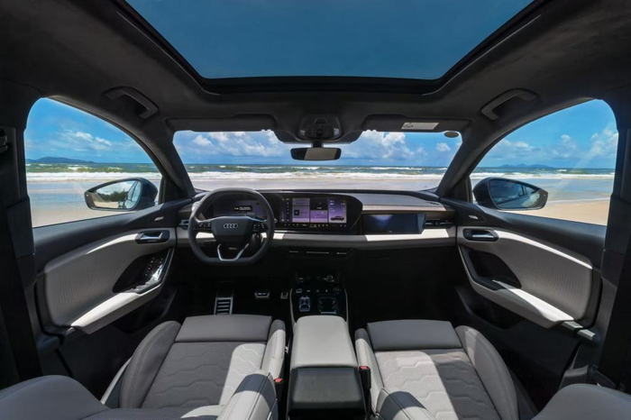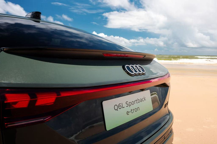 初见Q6L e-tron,它没有用过于跳脱的造型去刻意标榜“电动”身份。奥迪标志性的设计语言在它身上得到了延续与进化。加长105毫米后达到2995mm的轴距,配合低矮流畅的车顶线条(Sportback版本的溜背设计尤为优雅),营造出一种修长且富有力量感的姿态。设计师提到的“接近黄金比例”并非虚言,那条视觉上的黄金分割腰线,确实赋予了车身一种沉稳而和谐的美感。为中国市场专属设计的sphere前脸,封闭式格栅与两侧延伸的亮黑色元素,让车头显得更宽扁、更贴近地面,是一种不失内敛的蓄势待发。