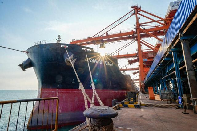 唐山钢铁生产车间。唐山劳动日报社记者赵亮 摄 好产品也得有好出路。1992年京唐港区投入运营后,唐山开启了连接世界的大门。如今的唐山港,235 条内外贸航线通达全球 200 个港口,成为我国北方沿海能源、原材料等大宗物资中转运输的重要枢纽。2024年,唐山港完成货物吞吐量 8.6 亿吨,总量稳居世界沿海港口第二位,实现从“有海无港”到“港通天下”的华丽转身。