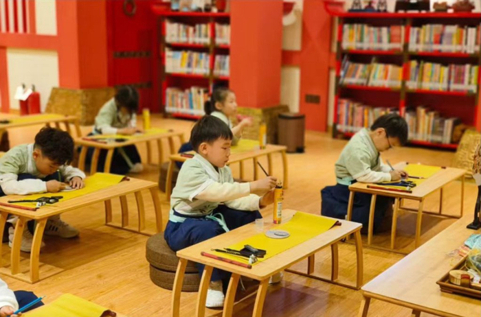 “我们要做的不是单一团队的‘小圈子’,而是全龄段、全时段、全域段的文化服务。”晓英说。每天从早9点开放至晚7点半,这里的灯光为不同年龄层的市民亮着:放学后的孩子抱着国学绘本在矮书架前驻足,楼宇白领利用午间一小时参加宋代点茶体验,社区舞蹈队的成员们身着汉服排练《诗经》舞蹈,周末亲子家庭则围坐在一起,在双语绘本课上共度温馨时光。