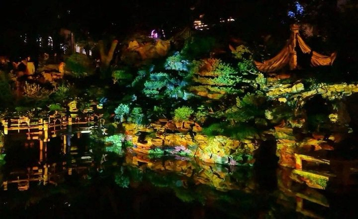 豫园“豫享山林”夜游项目实景图。上海市黄浦区供图三是淮海光艺之境,运用树灯、创意灯饰、艺术装置等灯光景观设施为淮海中路-新天地商圈增添优雅气韵,诠释时尚的夜经济消费空间。