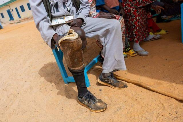 当地时间2025年4月11日,乍得瓦迪菲拉省图卢姆难民营,一名苏丹难民取下义肢,等待医生检查。2025年4月14日,联合国难民署表示,苏丹内战已导致“1300万流离失所者和难民”。视觉中国 图