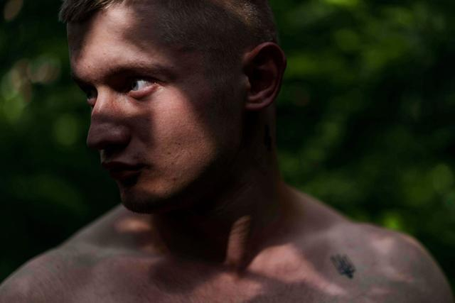 当地时间2025年2月14日,乌克兰基辅附近,乌克兰情报部队高级中士安德烈·鲁布柳克在军事训练中持步枪。鲁布柳克在战斗中失去了双臂和一条腿。视觉中国 图