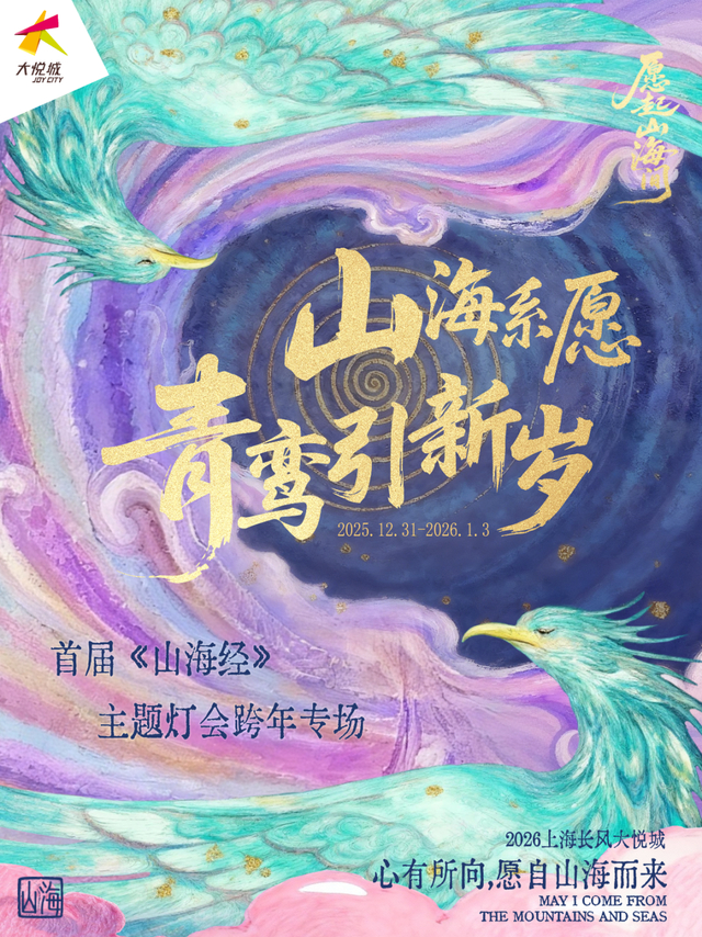 12月31日跨年当天,下午鱼灯巡游拉开迎接新年序幕,鱼灯穿梭如银河般流动,带来热闹氛围;“声动山海”跨年音乐会携苏州评弹、昆曲雅韵与新潮音乐会轮番登场,以国潮音律点燃仪式之夜,届时以《山海经》中青鸾鸟为原型打造的主题美陈将惊艳亮相,青鸾振翅、云羽流光,开启沉浸式神话图景。