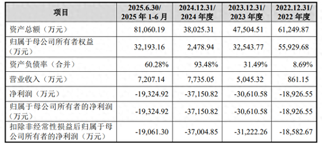 同心医疗财务数据 来源:招股书财务数据来看,2022年至2024年,同心医疗营业收入分别为861.15万元、5035.32万元和7735.05万元,2025年上半年营业收入7207.14万元。同期净亏损分别为1.89亿元、3.06亿元、3.72亿元,以及1.93亿元。