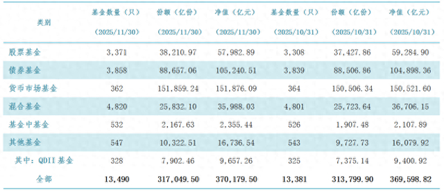 与此同时,公募基金产品数量持续扩容,11月末全市场产品总数已达13490只,单月新增109只。